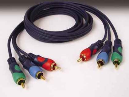 La conexión de video por componentes consta de tres conectores de tipo RCA rojo, verde y azul: la verde contiene información de blancos y negros (brillo), la azul contiene la diferencia entre el azul y el brillo, y la roja contiene la diferencia entre el rojo y el brillo. Una señal verde no es necesaria, ya que se logra mezclando la información de las otras tres. A diferencia del cable HDMI, los cables de video por componentes son analógicos, y no transmiten audio. Según la calidad de la TV y del dispositivo que estemos conectando por componentes, en raros casos podremos llegar a 1080p, pero normalmente llega a 720p o 1080i sin problemas.